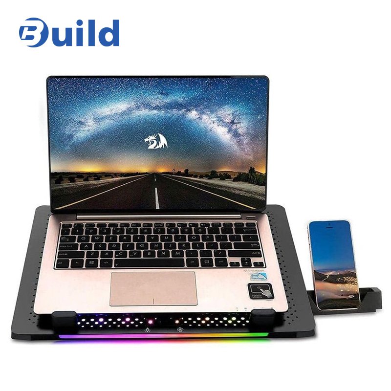 Redragon IVY GCP500 Laptop Cooler – Support 12 to 15.6 Inch – 2 USB Port – Fan Speed Control – Aluminum Panel Faster Cooler – RGB Light Mode – Two Phone Holder