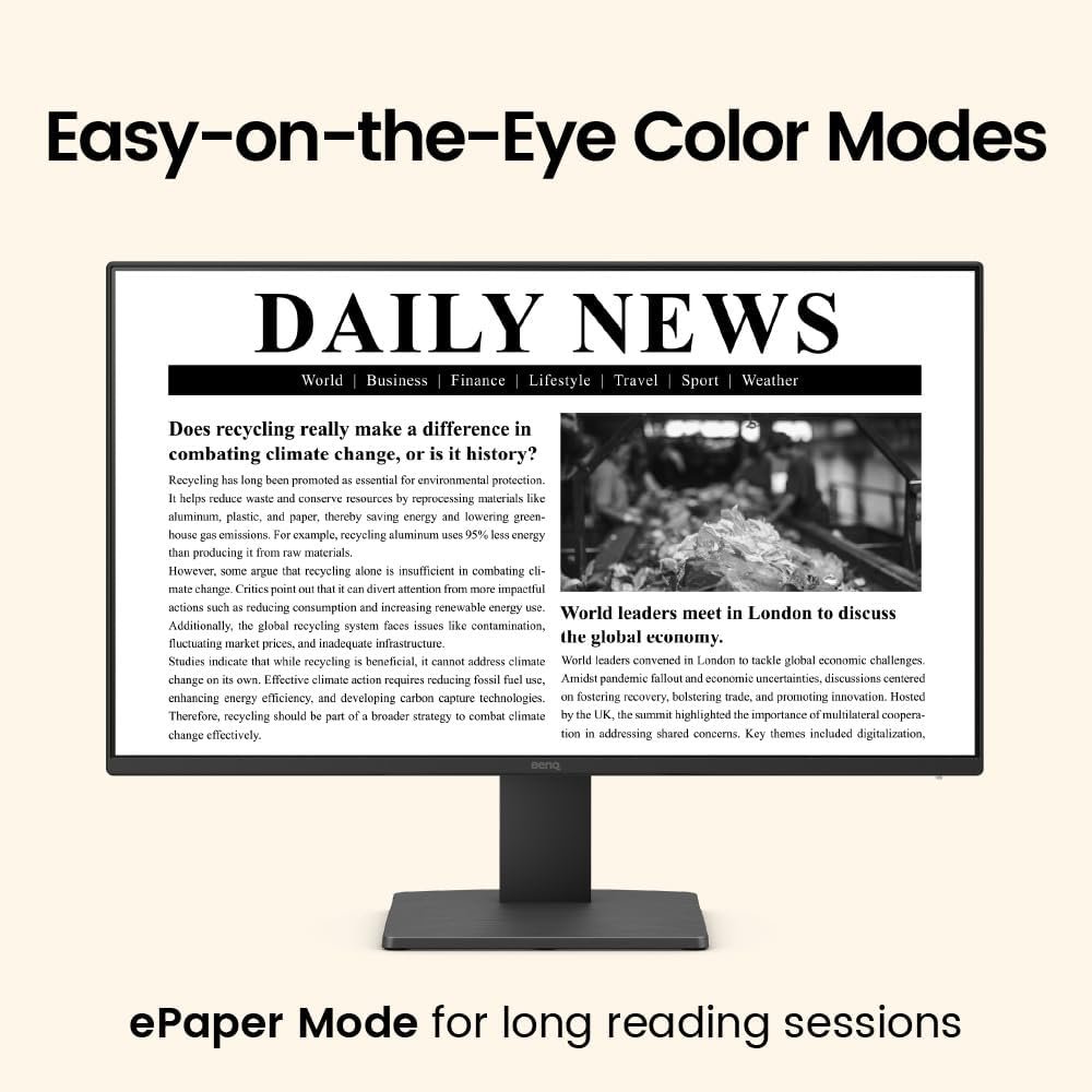 The BenQ GW2491 23.8″ IPS 100Hz Monitor also includes BenQ Eye-Care technologies like Low Blue Light Plus, Flicker-Free performance, and ePaper mode. These features reduce strain on your eyes, especially during long hours of use. In addition, Brightness Intelligence Technology automatically adjusts screen brightness based on surrounding light.