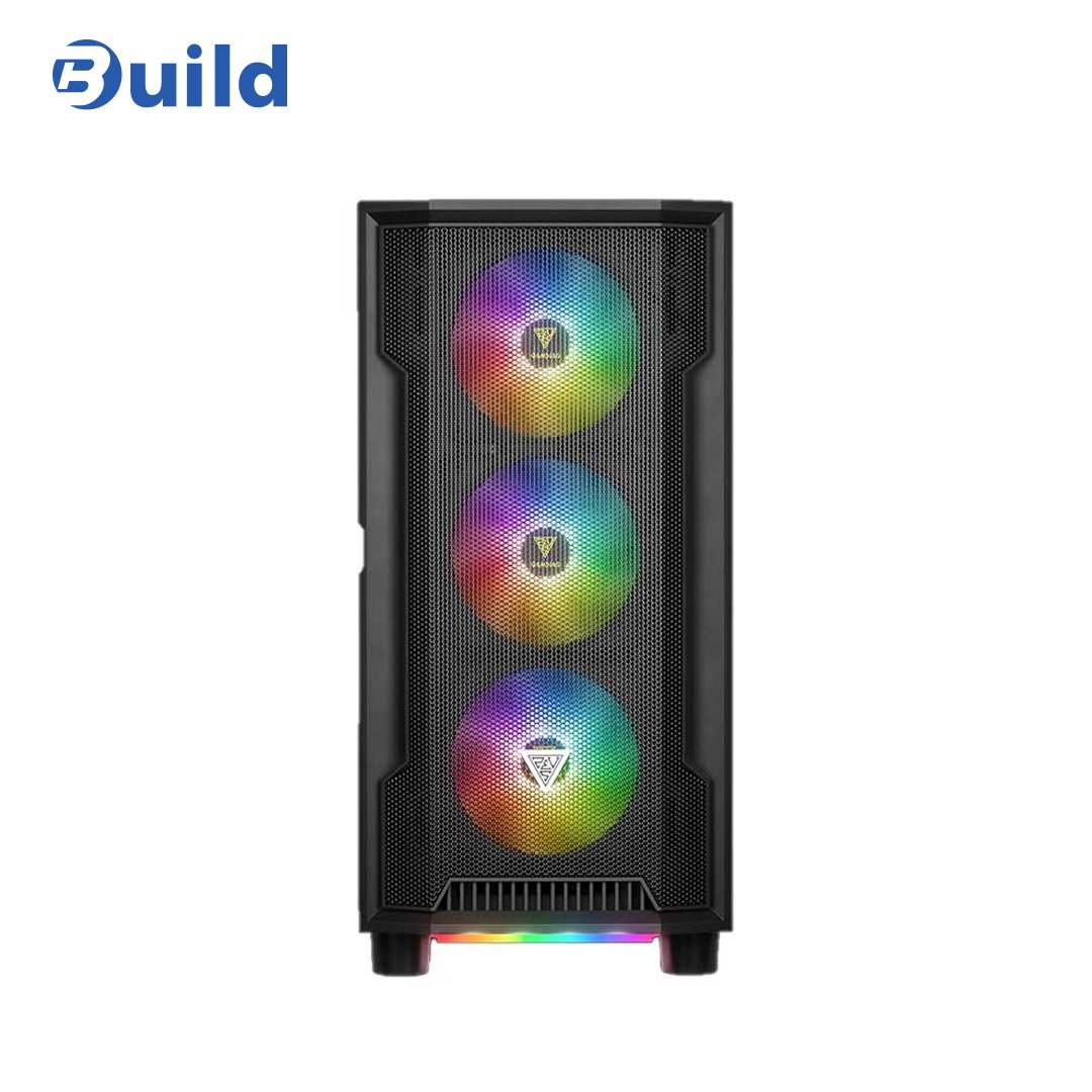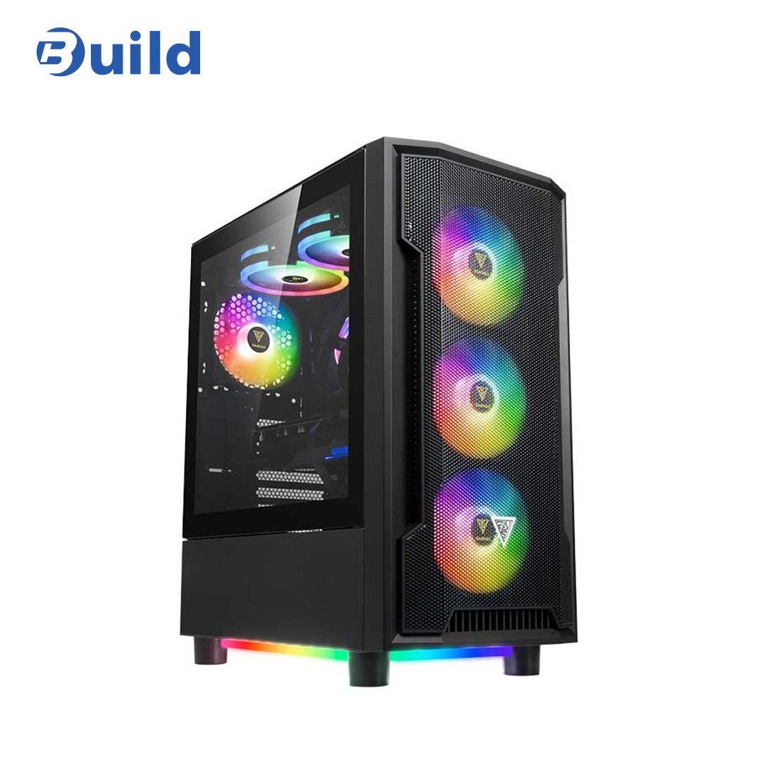 - The side is Transparent Tempered Glass Side Panel for Direct Viewing of Internal System. USB Control Panel and Top Power Button for User-friendly, Including Top/Bottom Anti-Dust Mesh Cover, 3x central illuminated 12cm RGB Fans on Front panel