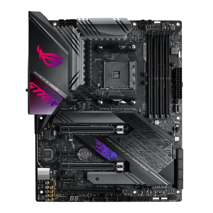 - AMD X570 ATX gaming motherboard with PCIe 4.0, 2.5 Gbps and Intel Gigabit LAN, Wi-Fi 6 (802.11ax), 16 power stages, dual M.2 with heatsinks, SATA 6Gb/s, USB 3.2 Gen 2 and Aura Sync RGB lighting