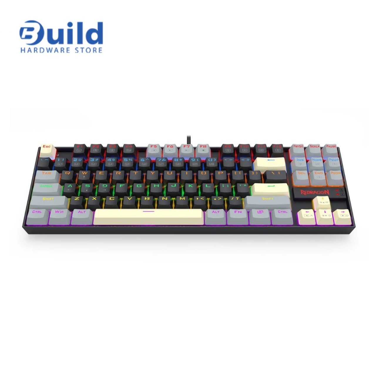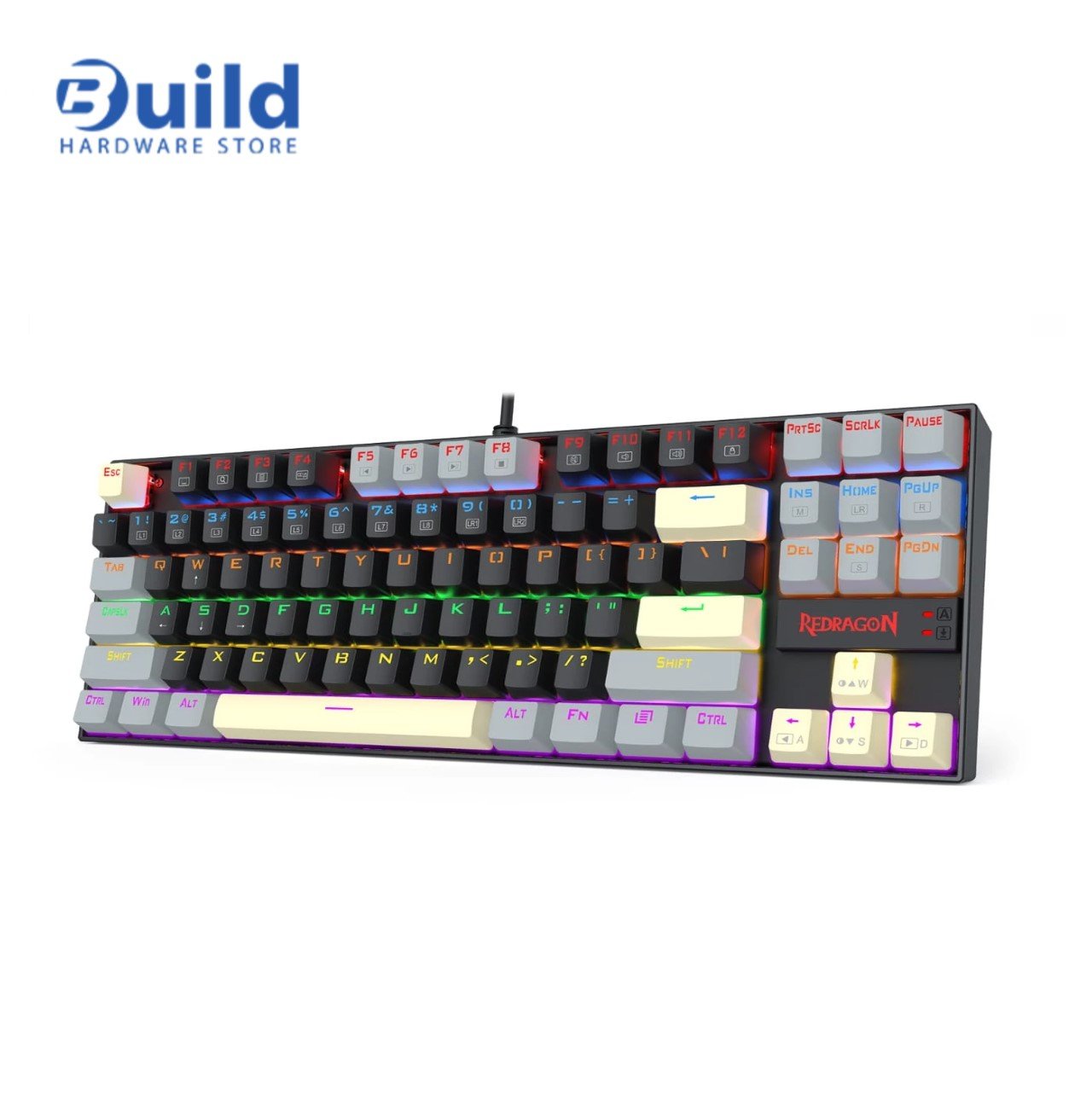 The keyboard’s tenkeyless (TKL) layout saves desk space and allows more freedom for mouse movement, making it a favorite among FPS and competitive gamers. Despite its compact size, the Redragon K552 LGY-R is built tough—with a metal alloy top plate and high-quality double-shot keycaps that resist wear and fading.