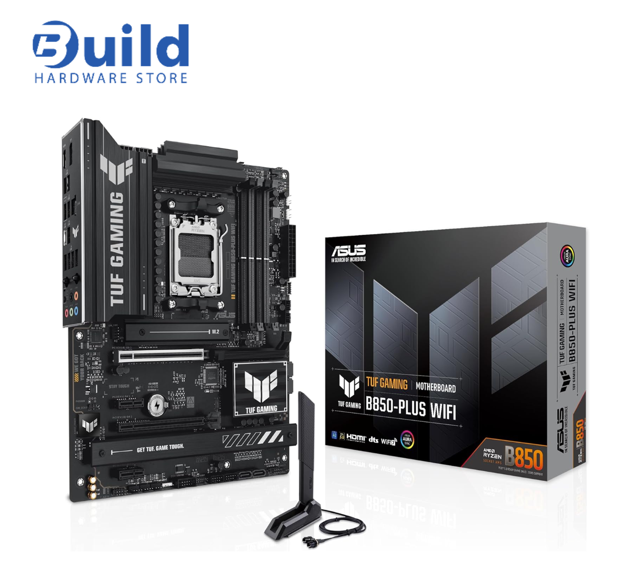 The ASUS B850 TUF PLUS WIFI is a next-gen AMD AM5 motherboard with PCIe 5.0, DDR5 support, and Wi-Fi 7 for fast and reliable performance.