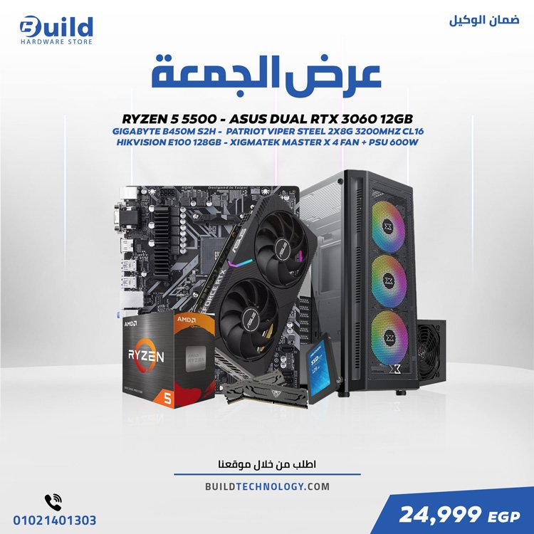 7.750,00 EGPBundle RYZEN 5 5500 – ASUS DUAL RTX 3060 12GB – GIGABYTE B450M S2H